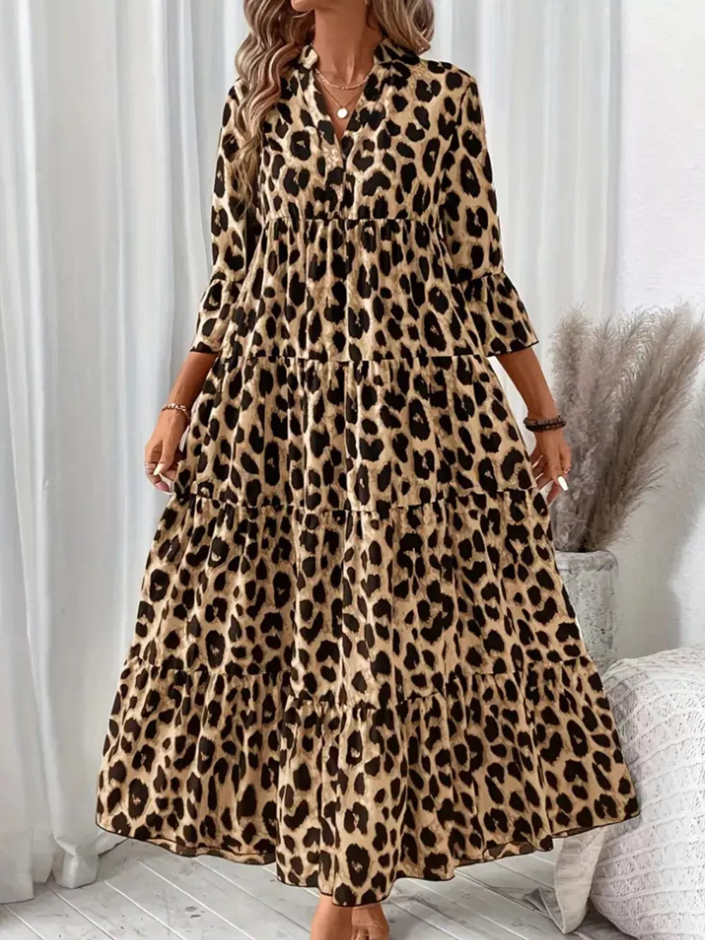 Elevate your style with this Leopard 3/4 Sleeve Midi Dress, designed to combine effortless confidence with refined feminine details. Its ruched accents and animal-print finish create a striking look that stands out while remaining elegant and wearable for everyday occasions.
